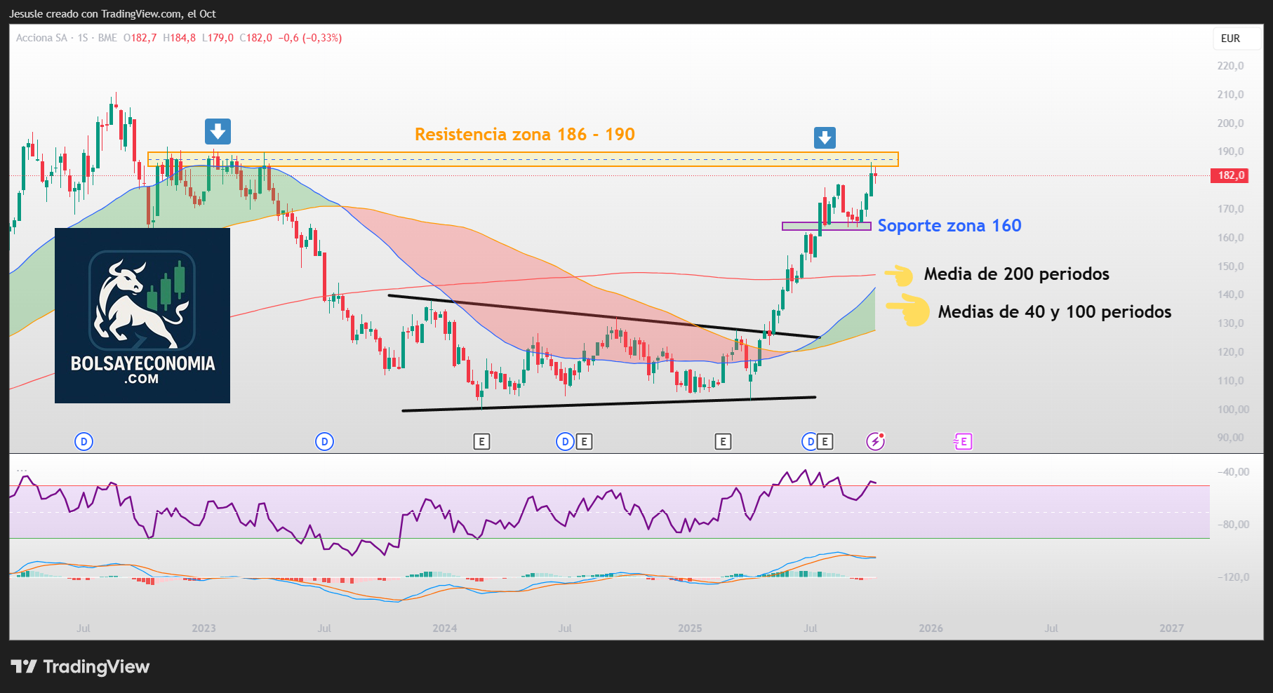 ✅ La situación es clara sobre las acciones de Acciona dentro del Ibex 35 y es que por encima de la zona de los 190 €, activaría de nuevo fuerza para seguir confiando en compras.