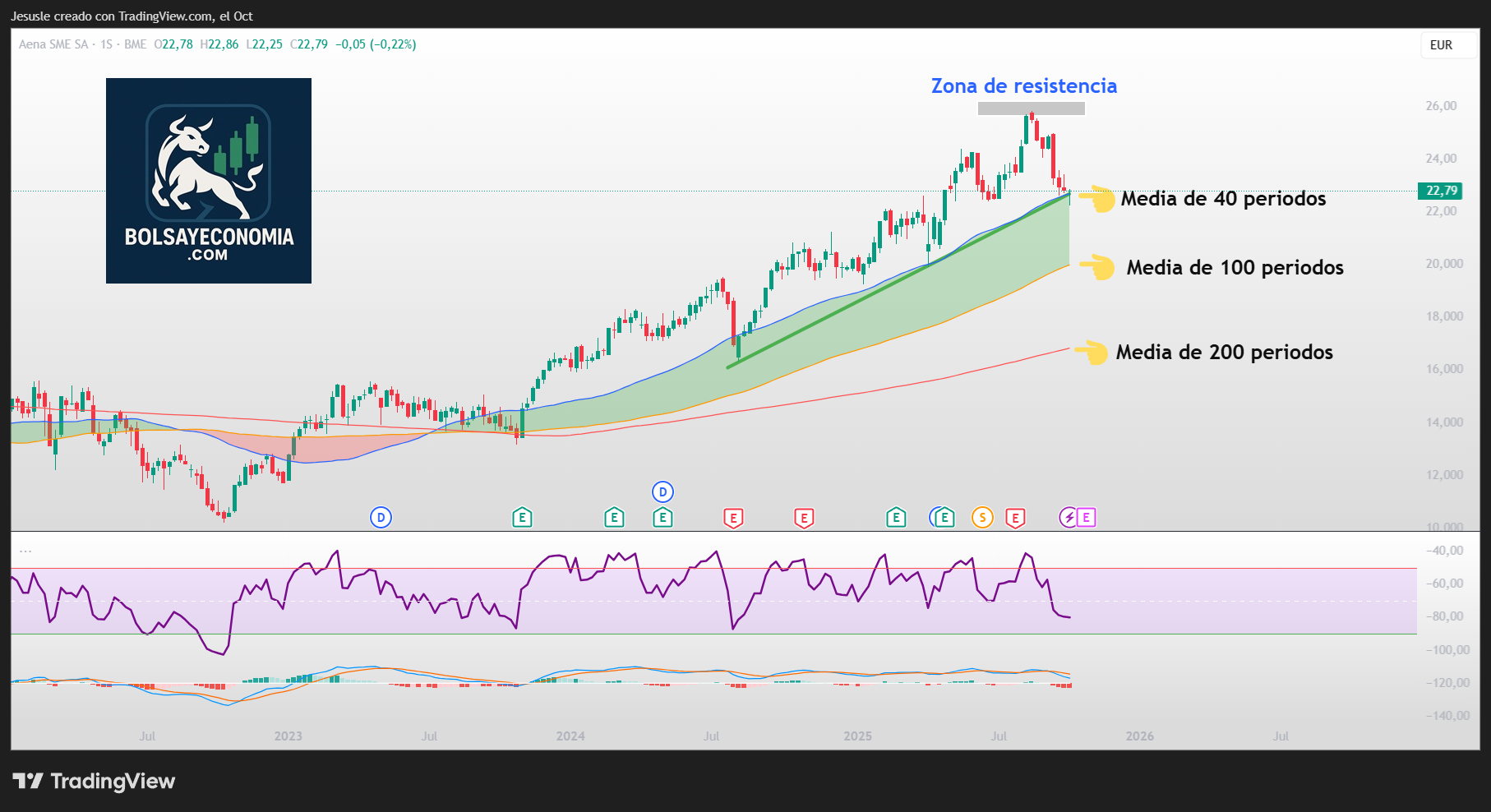 Comentaos que si ese también se recupera a su visita, las acciones de Aena podrían abrir camino hacia la zona de los 25,82 €.