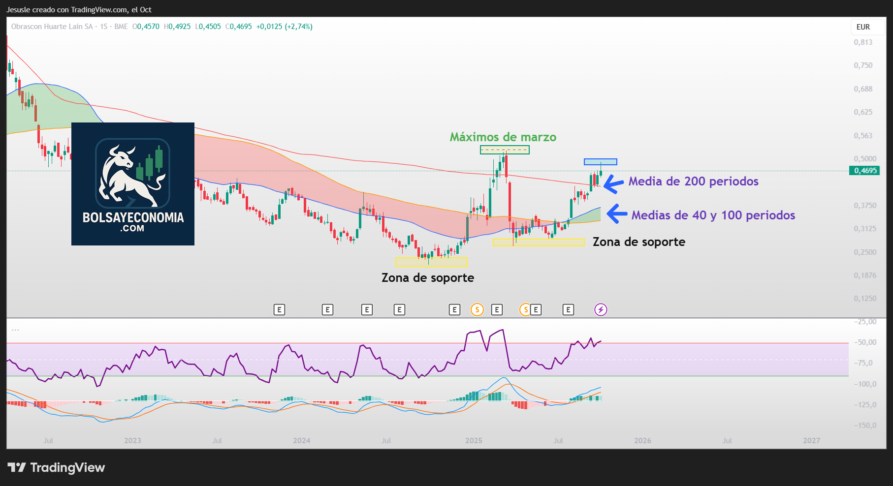 Gráfico semanal analizado sobre la compañía OHLA