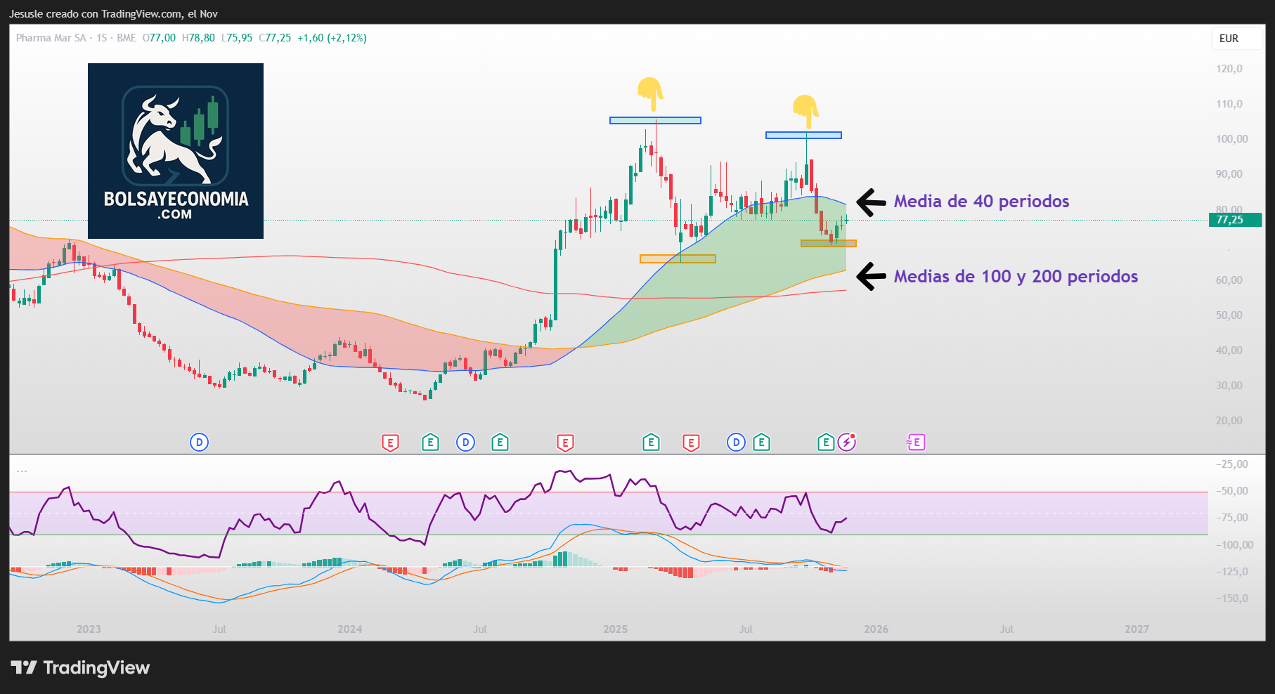 Gráfico semanal analizado sobre las acciones de PharmaMar
