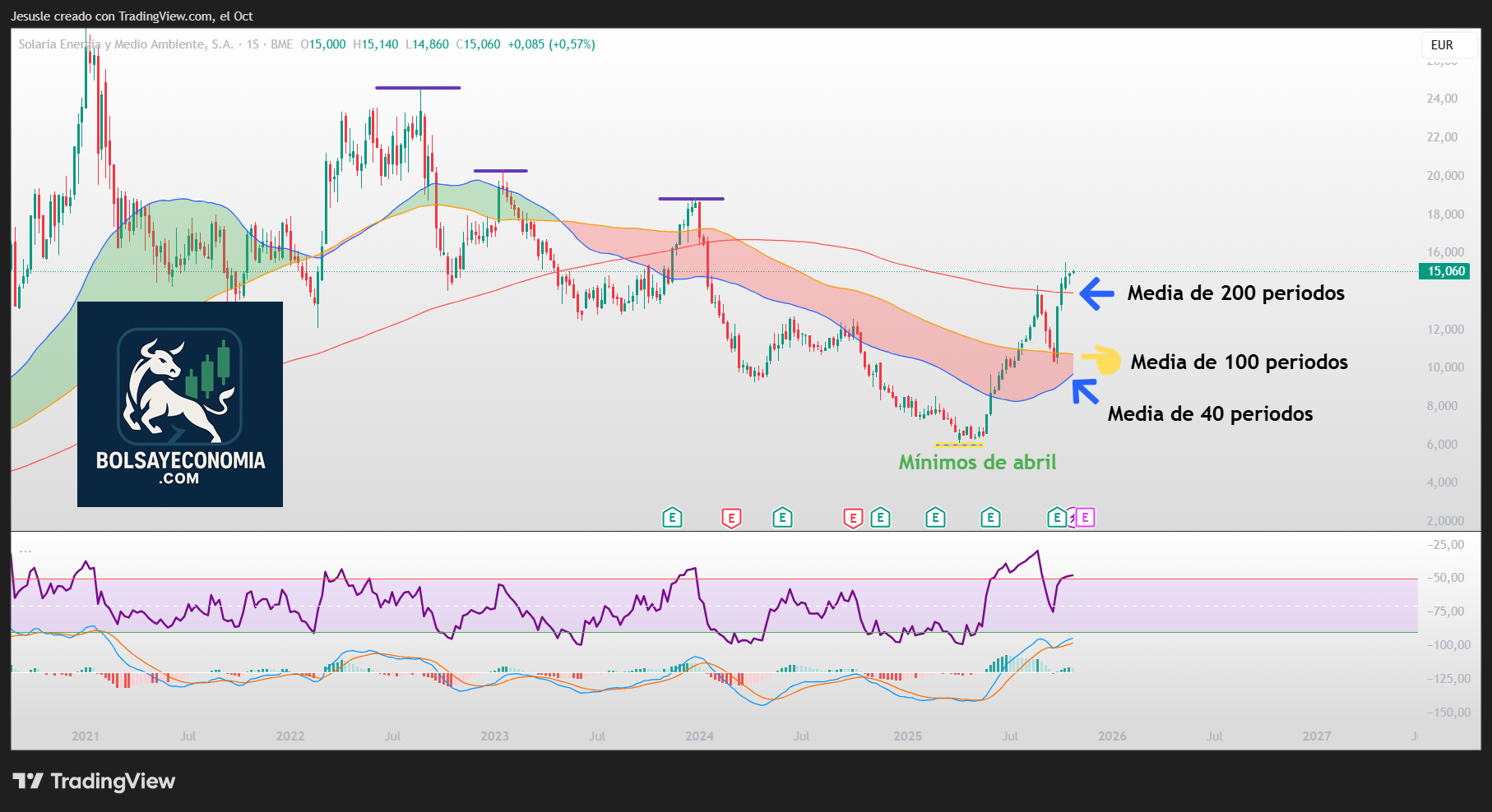 Ahí tocará ver muy bien si las acciones de Solaria tienen la fortaleza suficiente para romperlo al alza o si, por el contrario, se produce un rechazo.