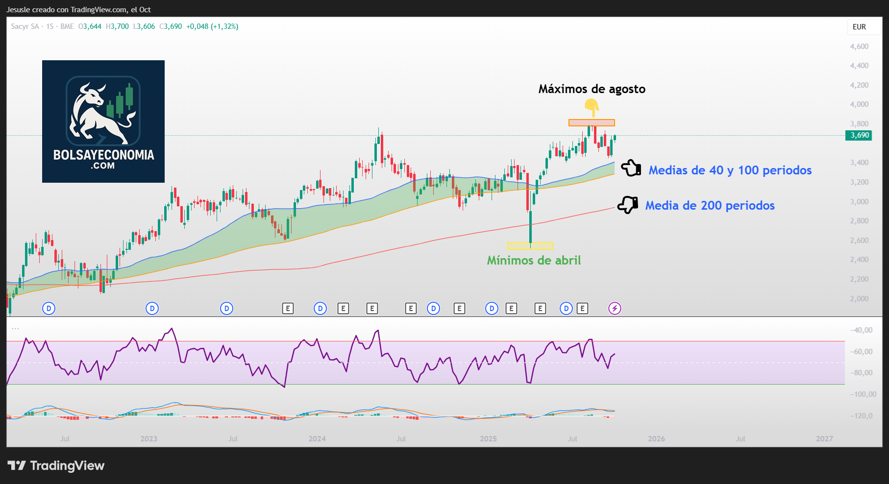 Superarla activaría fuerza de nuevo, dejando atrás los máximos del mes de agosto (a esos me refería al comienzo de este análisis), y debería apuntar hacia la zona de los 4,00 € como siguiente objetivo al alza.