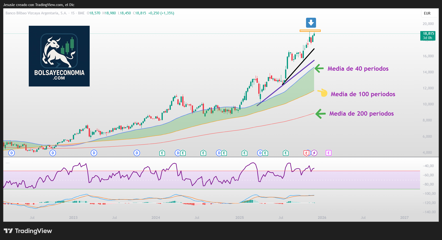 ✅ Por arriba romper la zona de los 19,08 €, sería una nueva señal de fuerza para seguir esperando subidas.