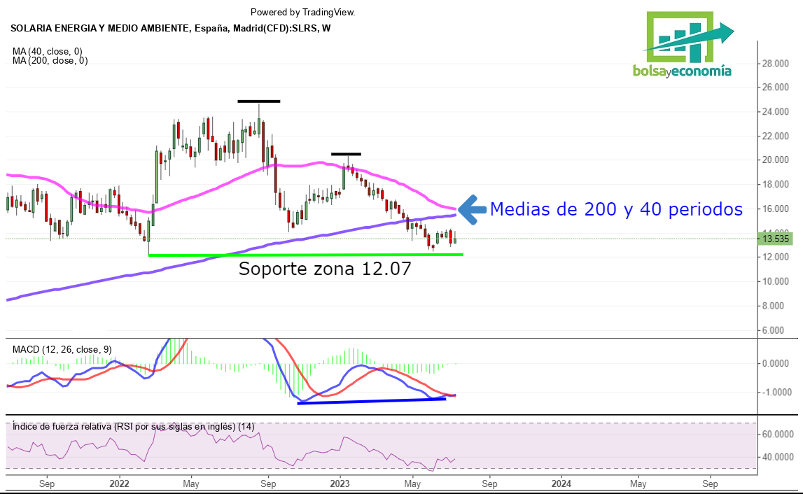 Resumiendo la situación de la compañía Solaria, mientras no se pierda la zona de soporte de los 12.07 euros, no activaremos nuevamente debilidad.