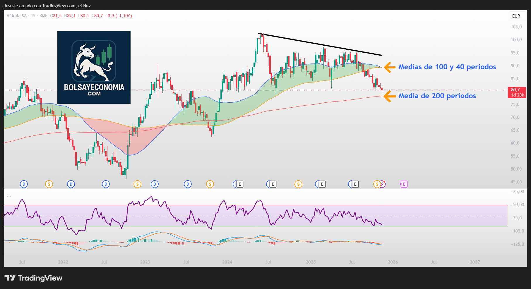 Por la parte baja, el primer soporte a tener en cuenta sobre Vidrala en bolsa lo vamos a situar sobre la zona de los 80 €.